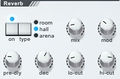«Reverb» – эффект, основанный на многократном наложении задержанного на доли секунды сигнала. Кнопки «on» и «type», располагающиеся рядом, как у Delay. Только в данном случае type имеет только три модификации: «room», «hall» и «arena». Попробуйте их включить, и вы услышите, как изменился звук, в соответствующей ассоциации с данными пространствами. «mix» – смешивание этих самых задержанных на доли секунды звуков; «mod» - modulation – модуляция – в результате поворота этой крутелки можно добиться более мягкого и теплого звука; и в самом низу «pre-dly» – отделяет источник звука от «хвоста» реверберации; «dec» - decay – мы встречались с этим понятием в самом начале статьи, и обозначает данное определение ничто иное, как спад, определяющий время перехода к затуханию звука; «lo-cut» - и «hi-cut» – опять таки, срез низких и высоких частот.