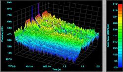 Спектрограмма (англ. spectrogram) - графическое изображение спектра сигнала, выполненное анализатором спектра. Чаще всего представляет собой графический компьютерный файл.