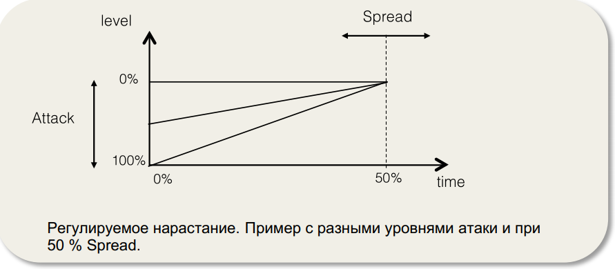 Пример с разными уровнями атаки (attack) при заданном уровне фиксации (spread).