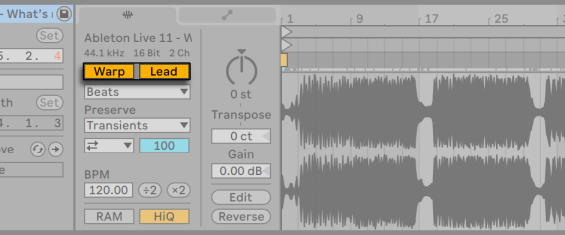 Саундтреки композиторов в окне клипа Live имеют опцию Lead/Follow. Когда добавляется видеоклип, он как правило, устанавливается в мастер темп, в то время как аудиоклипы остаются в ведомом темпе. Таким образом видеоклип, устанавливает основные свойства клипов в окне аранжировки. В этом случае, добавление варпинг маркеров к видеоклипу определяет "контрольные точки" где будет синхронизироваться музыка. Обратите внимание, что для того, чтобы клип мог быть установлен как мастер темп в видеоклипе должен быть активирован переключатель Warp.
