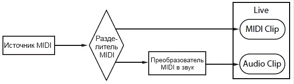 Мы также провели аналогичную процедуру для проверки синхронизации исходящих MIDI-событий, как показано на следующей диаграмме: