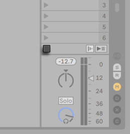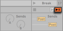 Чтобы одновременно отключить все клипы аранжировки, нажмите на кнопку остановки всех клипов в поле статуса мастер трека. Клипы в аранжировке и в сессии существуют независимо друг от друга, что позволяет легко импровизировать в аранжировке снова и снова, пока это необходимо.
