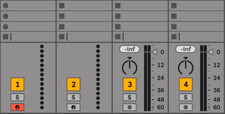 5. Solo (соло) - щелчок по переключателю Solo (или нажатие клавиши быстрого доступа [S]) выполняет солирование трека с отключением звука всех других треков. При выборе нескольких треков, нажатие по любому из переключателей Solo будет солировать все выбранные треки. В противном случае, треки могут быть солированы только по одному за раз, если при нажатии не удерживается нажатой клавиша Ctrl (PC)/Command (Mac) или выключена опция Exclusive Solo в настройках Record/Warp/Launch.