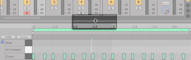 При работе с MIDI, вам может потребоваться дополнительное пространство экрана для MIDI редактора. Вы можете нажать и перетащить разделитель окон между окном сессией или аранжировки и окном клипа, чтобы увеличить MIDI-редактор.