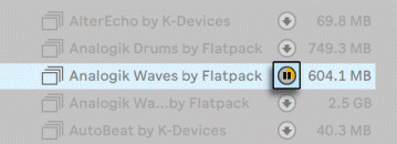 Нажмите значок паузы, чтобы приостановить загрузку пакета. Ход загрузки отображается желтым цветом