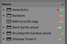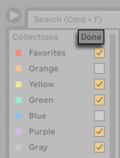 Обратите внимание, что ярлыки «Коллекции» также могут быть назначены нескольким элементам браузера (если их выделить несколько). Кроме того, можно назначить цветовую метку для различных «типов» элементов. Например, вы можете назначить одинаковую цветовую метку для звуков ударных, MIDI-эффектов и плагинов.