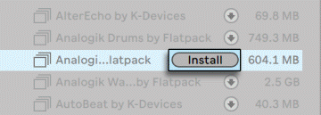 Ярлык Packs (пакеты) в браузере показывает все пакеты, которые предустановлены вместе с Live, а также те, которые вы установили самостоятельно.