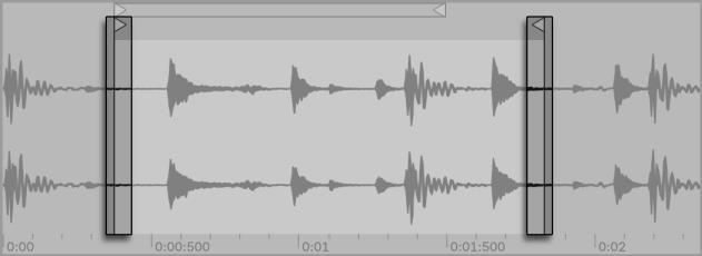 Проигрываемый раздел сэмпла, который воспроизводится при запуске клипа, устанавливается с помощью региона клипа и элементов управления зацикливанием. Не зацикленный клип будет проигрываться от начального маркера до конечного или пока он не будет остановлен.
