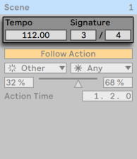 Примечание: Для сетов, которые были созданы в более старых версиях Live, ранее Live 11, со значениями темпа и/или тактового размера, указанными в названиях сцен, их значения будут перенесены в элементы управления «Темп сцены» и «Тактовый размер сцены». При открытии этих сетов в более новых версиях Live, ширина мастер-трека настраивается таким образом, чтобы были видны параметры «Темп сцены» и «Тактовый размер сцены».