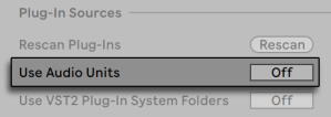 Когда вы открываете Live в первый раз, Audio Units плагины не будут показываться в браузере. Для того чтобы активировать ваши Audio Units в качестве плагинов в источнике, пожалуйста нажмите на кнопку Activate в браузере, или перейдите в настройки Plug-In, нажав Ctrl+запятая (PC) /Command+запятая (Mac). Там вы найдёте разделе источников плагинов. Включение опции Use Audio Units активизирует Audio Units плагины, так что они появляются в браузере Live.