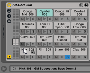Практически любой объект из браузера Live - сэмплы, эффекты, инструменты и пресеты - можно перетащить на пэд, пэду автоматически назначается нота и по мере необходимости создаётся или изменяется внутренняя цепь устройств. Например перетаскивание сэмпла на пустой пэд, создаёт новую цепь, содержащую Simpler, с перетащенным сэмплом готовым к воспроизведению от ноты пэда. Если вы на этот же пэд перетащите звуковой эффект, он поместиться после Simpler-а в той же цепи. Чтобы заменить Simpler, просто перетащите ещё один сэмпл на этот же пэд - любые нижестоящие звуковые эффекты или вышестоящие MIDI эффекты будут оставлены без изменений, будет заменён только Simpler и сэмпл.