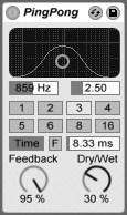 Dry/Wet (сухой/обработанный) регулирует баланс между обработанным и сухим сигналами. Установите его на 100 процентов при использовании Ping Pong Delay на Return треке.