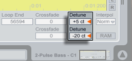 Кроссфэйды удержания и затухания зацикливания - Detune (расстройка зацикливания удержания и зацикливания затухания) – поскольку зацикливания это не более чем осцилляторы, внутри зацикливания может быть сдвинута высота тона сэмплов, по отношению к продолжительности зацикливания. С помощью Detune высоту тона этих отрезков можно установить в соответствии с остальной частью сэмпла.