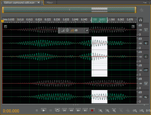 По умолчанию, Adobe Audition применяет выделение и редактирование для всех стерео или сурраунд каналов сигнала. Однако, вы можете легко выбирать и редактировать определённые каналы.