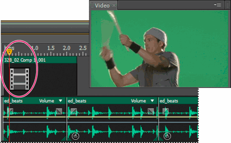 В панели Video, вы можете просматривать видеоклип проигрываемый в многодорожечной сессии, и точно синхронизировать саундтрек с конкретными событиями в видео, такими как изменения сцены, последовательности названий или спецэффектов.