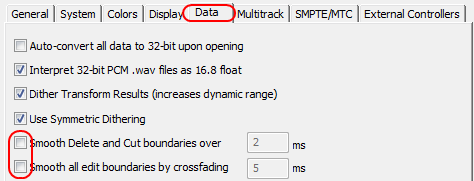 В программе Adobe Audition по умолчанию стоят настройки для менее заметного удаления или применения эффектов, если вы произведёте неправильное удаление, то щелчки сгладятся или если примените какой либо эффект, то не будет резких скачков звука в месте его начала. Но это не всегда удобно, к примеру если нужно создать волну для синтезатора или точно подредактировать сэмпл, эти настройки могут мешать. Скачайте пример для проведения опыта. => Пример.