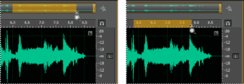 При высоких уровнях масштабирования, к различным частям звукового материала можно перемещаться с помощью панели редактирования.