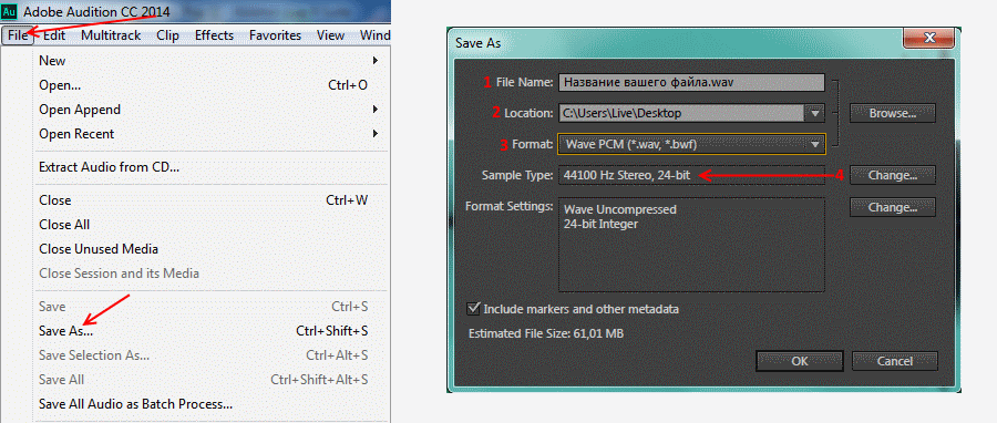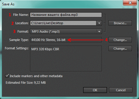 Adobe Audition сохранение файла