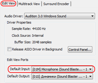 После этого посмотрите настройки входа микрофона в Adobe Audition (попробуйте их поменять):