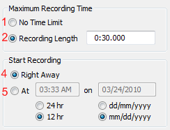 - Recording Length - запись в течение ограниченного периода, который вы вводите в поле;