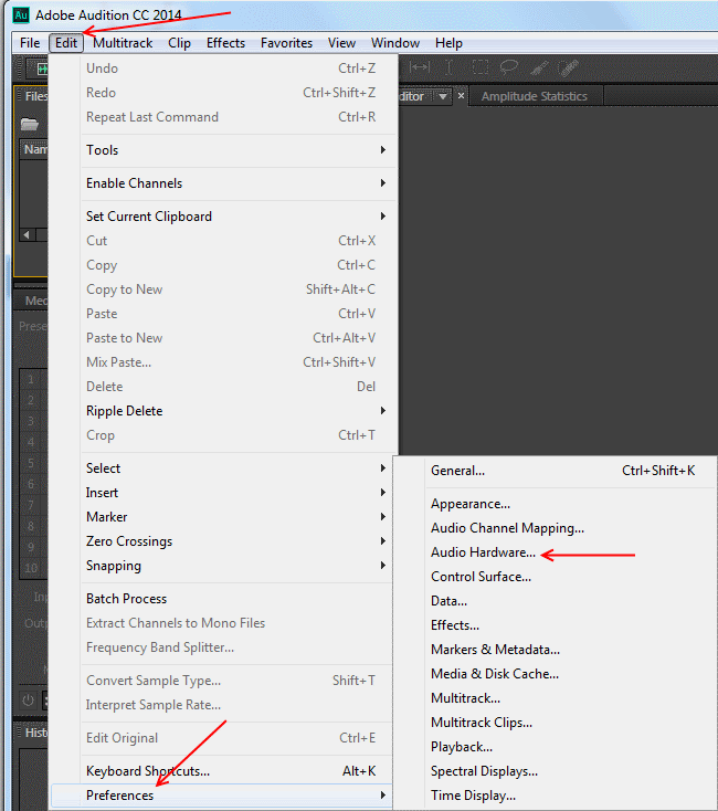 Если вы уверены, что правильно настроили и подключили микрофон, но он всё равно не работает, то попробуйте поменять входы в настройках программы. Для этого нажмите вкладку Edit выберите Audio Hardware Setup: