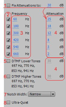 - DTMF Higher Tones - фильтры верхнего тона DTMF телефона. Эти параметры полезны, если вы подготавливаете аудио для радио;
