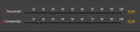 - Complexity (сложность) - указывает сложность шума. Высокие значения применяют большую обработку, но это может ухудшить качество звука. Значения в диапазоне от 1 до 100; по умолчанию 16.