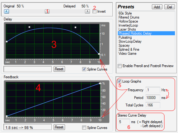 1. Original and Delayed - смесь в нужном количестве оригинального и задержанного звука;
