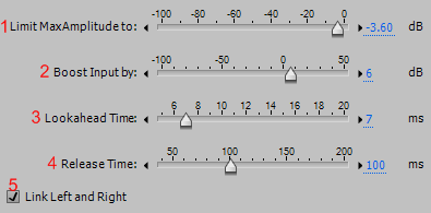 - Limit Max Amplitude To - устанавливает максимальную допустимую амплитуду. Чтобы избежать клиппирования при работе с 16-битными файлами, установите это значение не более чем -0,1 дБ;