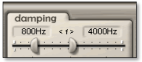 Частотно-зависимое поглощение ArtsAcoustic Reverb позволяет очень гибко моделировать различные материалы и их влияние на звуковые характеристики, потому что поглощение может регулироваться на трёх полосах частот: низких, средних и высоких. Частоты среза полос могут меняться с помощью ползунков или в окне frequency display. Вы можете определить поглощающую способность для каждой полосы в пропорции (Ratio) (отношение) к общему времени реверберации (Decay) (затухание).