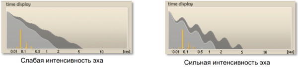 Используйте Echo Intensity (интенсивность эха) – как видно из названия –для регулировки интенсивности эха. Данный параметр определяет, насколько сильным будет эффект эха. Он отображается в Time Display в виде затухающего хвоста, более или менее волнистой структуры: