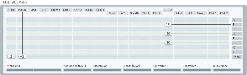 Другой графический интерфейс можно найти в окне модуляций. Он работает по аналогии с FM матрицей: