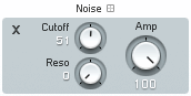- Reso (резонанс) устанавливает резонанс фильтра низких частот для генератора шума. Он добавляет к шуму ощущение высоты тона.