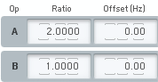 Offset (смещение частоты) применяет постоянное смещение частоты оператора (в Гц) вызывая расстройку и биение относительно других операторов. Это смещение постоянно и не зависит от высоты тона. Пример: Смещение в 5 Гц вызывает биение ровно в 5 Гц между выбранным оператором и другого операторами без смещения.