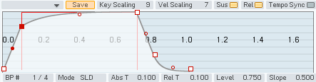 Используйте мощные и точные многоступенчатые огибающие, чтобы получить движущийся звук и жёсткий контроль над тембральными изменениями. Примеры могут представлять собой развивающиеся звуки пэдов, где несколько операторов со временем затухают и через некоторое время с помощью медленных огибающих появляются или диссонирующий звук, который сглаживается в фазе спада огибающей.