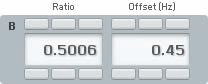 Offset (смещение частоты) применяет постоянное смещение частоты оператора (в Гц) вызывая расстройку и биение относительно других операторов. Это смещение постоянно и не зависит от высоты тона. Пример: Смещение в 5 Гц вызывает биение ровно в 5 Гц между выбранным оператором и другого операторами без смещения.
