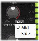 При повороте ручки ещё дальше, вы в конечном итоге обрабатываете только mid-сигнал (моно содержание обрабатываемого звука) или только side-сигнал (стерео содержание обрабатываемого звука). С помощью маленькой кнопки в правой нижней части ручки Stereo Link, вы можете переключаться между ними.