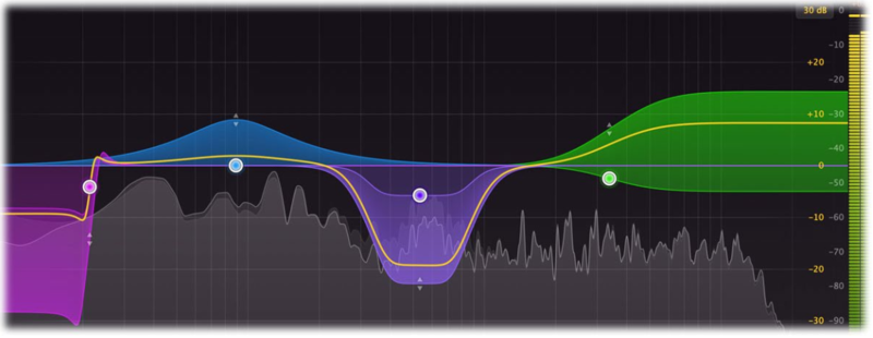 Проще говоря, динамический эквалайзер динамически изменяет усиление полосы эквалайзера в зависимости от уровня входного сигнала. Это позволяет выполнять тонкие и хирургические изменения, аналогичные многополосному компрессору, но зачастую более интуитивно понятным и легким в работе способом.