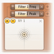 Чтобы добавить XY контроллер в качестве источника модуляции, нажмите кнопку + в строке выбора источника и выберите New XY Controller.