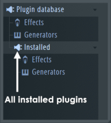 Папки Plugin database > Effects/Generators содержат списки ваших "Избранных" плагинов. Эти данные, используются для генерации сборника плагинов (F8) и различных меню «добавления плагинов» в FL Studio.
