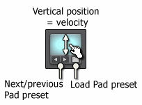 - Пресеты пэдов - это файл установок сэмпла/слоя. Для выбора без предварительной прослушки, нажмите кнопку Load preset. Кнопки назад и вперёд позволяют переключаться между альтернативными установки для используемого пэда (если доступно). Каждый набор ударных может включать в себя несколько различных сэмплов для каждого пэда.