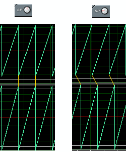 3. Stereo Phase (SP) (стерео фазировка) - позволяет задавать различные смещения фаз для левого и правого каналов осциллятора. Результатом такого смещения будет, начало осциллятора в разных точках формы осциллятора (например, для запуска на максимальном значении синуса, а не в нулевой точке). Стерео фазировка добавляет к богатства и стерео панорамы звуку. Приме смещает стерео-фазы для осциллятора (см. рис. ниже):