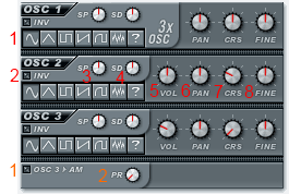 6. Panning (PAN) (панорама) - устанавливает стерео панорамирование отдельных осцилляторов.