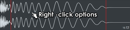 Маркеры фэйдов, как показано выше, отображаться только, если в Declicking была выбрана опция bleeding. Bleeding означает, что звук будет выходить за пределы точки отрезания, чтобы завершится, очень короткие фейды избавляют от щелчков.