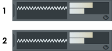 В приведённом ниже примере, осциллограф отображает положительное смещённый звукового сигнала (1). Выход осциллографа (2) показывает компенсированное постоянное смещение, в результате переключения плагина Fruity Center в состояние ON.