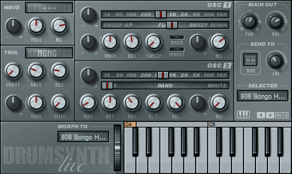 Fruity DrumSynth Live это FL Studio версия плагина популярного автономного DrumSynth, созданного Maxim Digital Audio. DrumSynth Live в режиме реального времени поддерживает одновременно 120 патчей ударных, каждый из которых назначен на отдельную клавишу (от C0 до B9). Вы можете переносить динамику из одного ударного патча в другой - просто выберите патч для перенесения и настройте регулятор силы переноса.