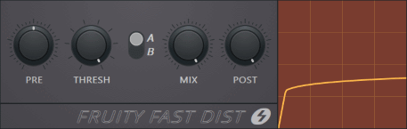 Fruity Fast Dist это эффект для искажений который мало нагружает процессор. Это тот же самый эффект искажения, который используется в синтезаторе TS404.