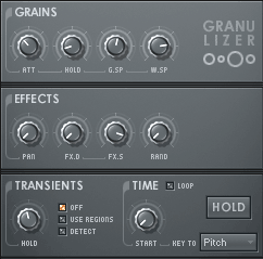 • Hold (удержание) - устанавливает длительность или транзиенты гранул.