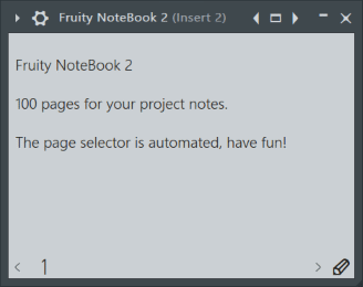 Fruity NoteBook 2 - это 100-страничный блокнот, полезный для хранения информации о песнях, истории, тексты песен или личные заметки. Если вы хотите использовать RTF (Rich Text Format), попробуйте Fruity NoteBook или используйте Fruity HTML NoteBook.