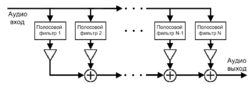 Срединные частоты полосовых фильтров графического эквалайзера обычно "равномерно" распределены по октавным интервалам. Каждая октава соответствует степени 2, поэтому шаг в октаву со срединной частоты 100 Гц будет выглядеть следующим образом: 200 Гц. 400 Гц. 800 Гц и т.д. Для шага в 1/3 октавы коэффициент умножения будет равен 2 в степени 1/3, что примерно равно 1.26. При первой срединной частоте в 100 Гц следующие частоты будут равны 126 Гц, 159 Гц, 200 Гц и т.д. Предпочтительные для использования в эквалайзерах частоты фильтров описаны в специальном стандарте ISO.
